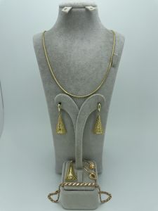Շղթա, ապարանջան, կոմպլեկտ, օղեր: հարգը` 583, քաշը` 16.4 գրամ, ընդամենը` 499,700 հհ դրամ: