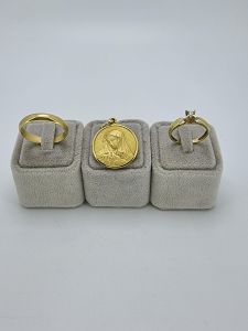 Կուլոն, մատանի: հարգը` 583, քաշը` 4.6 գրամ, ընդամենը` 162,850 հհ դրամ: