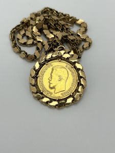 Chain, pendant: fineness - 583, weight - 25 gram, total - 356,250 amd: